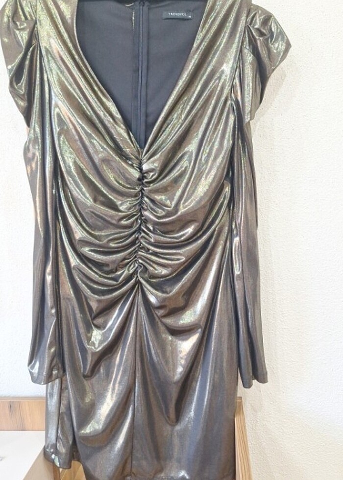 Bronz vucuda oturan Parıltılı drapeli elbise önü büzgülü