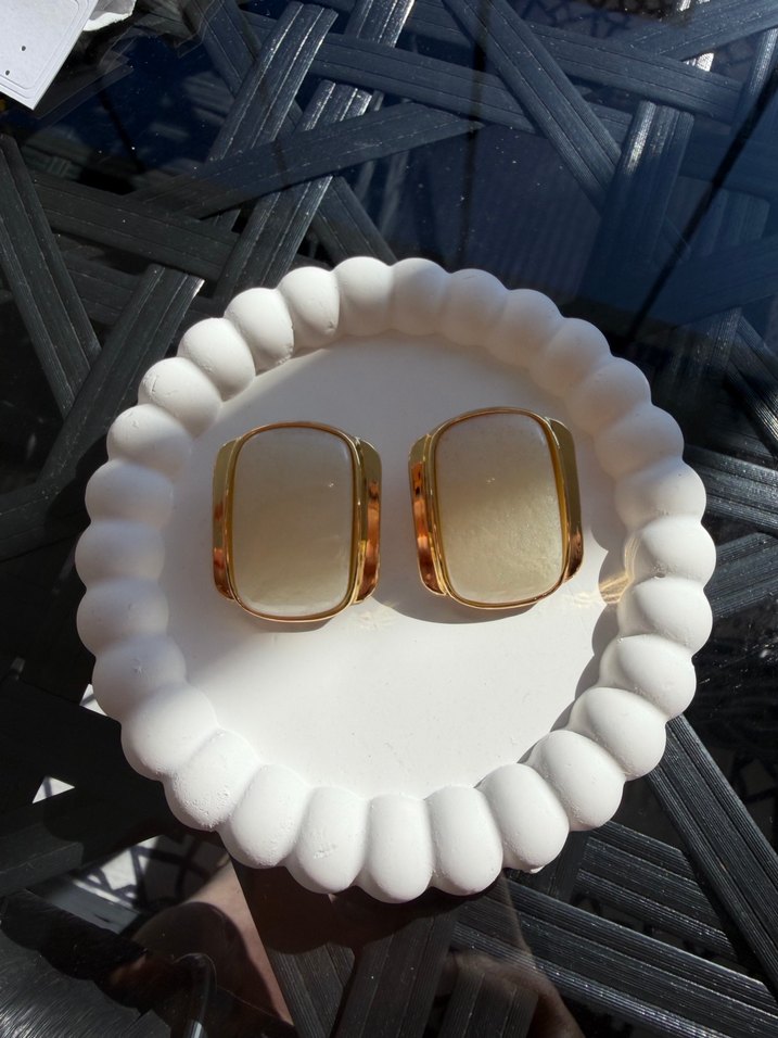 Parıltılı altın mini küpeler, modern klasik tarzda, günlük kullanıma uygun. Parizyen zarafeti yansıtan parlak yüzeye sahiptir. ✨