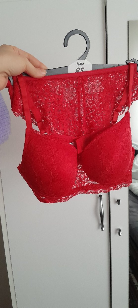 Parıltılı kırmızı dantel mini sütyen, kısa boy ve bohem Paris tarzında, narin çiçek desenleriyle. Beden 85. ❤️