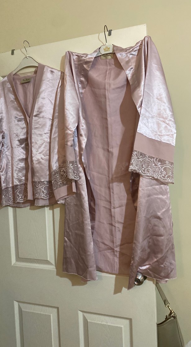 parlak dokulu, işlemeli detaylara sahip uzun kadın sabahlığı. Uzun kollu ve bol kesim, Paris tarzını yansıtıyor. Ürün Pierre Cardin’nin pijama ve sabahlığıdır sabahleyin ipi yoktur maalesef bulamıyorum Small ve Medium bedeni uygundur satendir hiçbir kusuru da yoktur sabahleyin ipi hariç takım olarak
