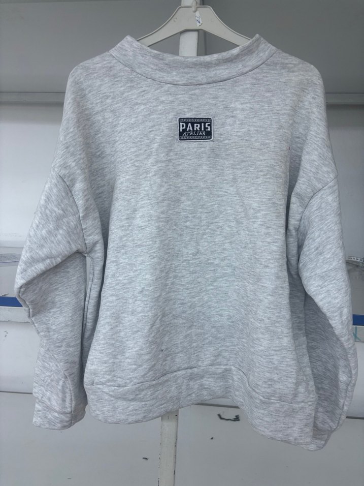 Gri renkli, uzun kollu ve yuvarlak yakalı sweatshirt, rahat kesimi ve Paris baskısıyla günlük sokak stili için uygun, yumuşak ve sıcak kumaştan yapılmıştır.