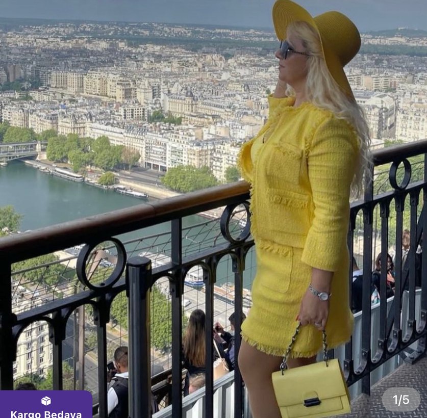 3 parça takımdır.Ceket,iç Büstiyer ve etekten oluşuyor.Paris Eyfel kulesi gezisinde giydim sadece.(Bedeni M ) Marka İPEKYOL .
