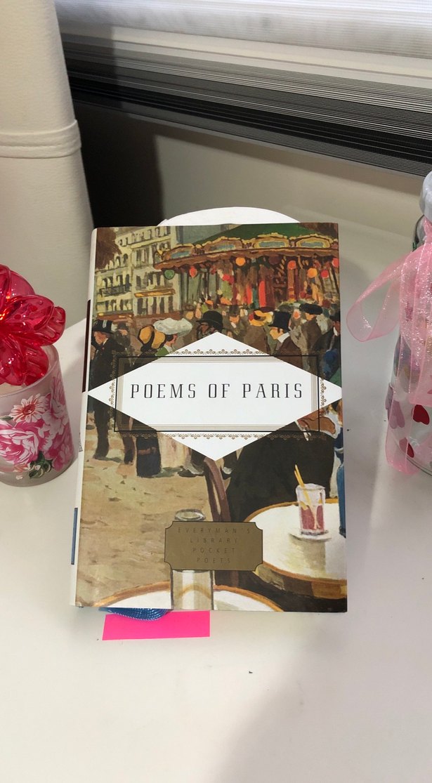 "Paris Şiirleri" adlı kitap, Paris şehrinden ilham alan şiirler içerir ve sanatsal kapak illüstrasyonuna sahiptir. İngilizce ciltli şömizli raf no h1