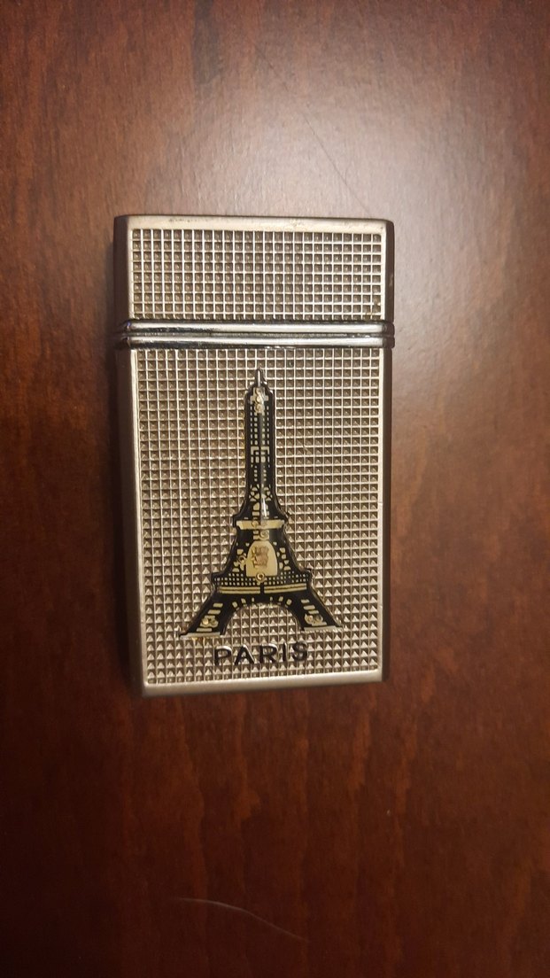 Paris yazılı ve Eyfel Kulesi desenli Dupont tarzı metal çakmak. Eski bir üründür.Gaz doldurunca çalışacağını düşünüyorum.