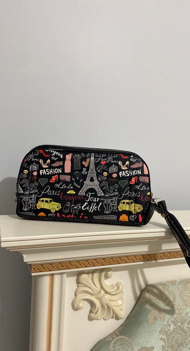 Sentetik kumaştan, Paris temalı baskılı ve fermuarlı kadın portföy çanta, genç ve trend kullanıma uygun. Sadece klubunda sorun var