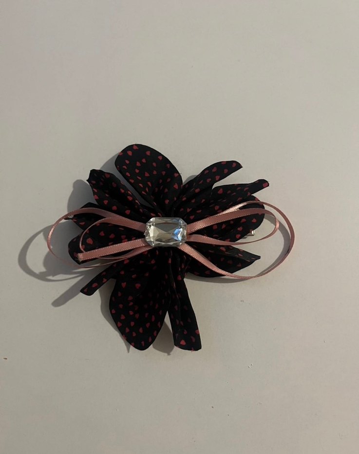 Sentetik kumaştan yapılmış, ortasında şeffaf taş bulunan çok renkli koyu saç aksesuarı, gotik ve avangart tarzlar için uygun.