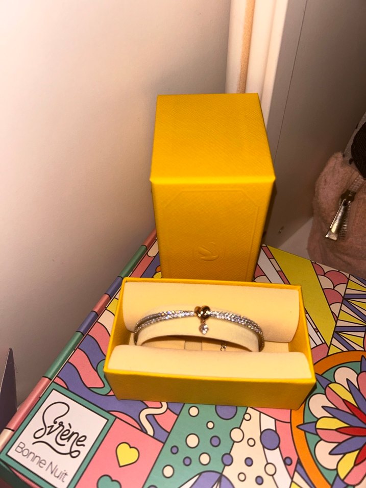 Altın renkli, tokalı ve yılan desenli kadın bilekliği. Parisian counterculture tarzında, "Bonne Nuit" yazılıdır. Düğün için uygundur. ✨
