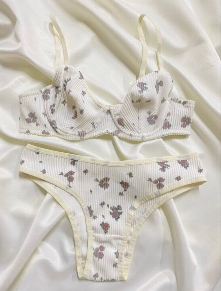 Parisian stilinde, pastel çiçek desenli beyaz büstiyer ve külot takımı, rahat ve şık bir kullanım sunar.