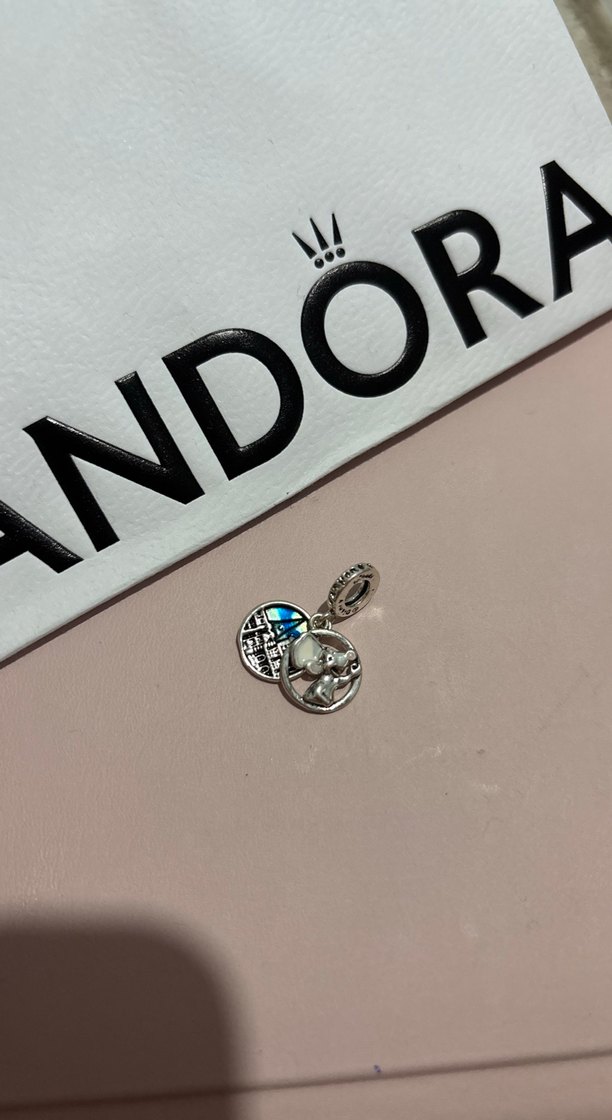 Parisian tarzı gri charm, baskılı ve boncuklu detaylara sahip. Romantik buluşmalar için uygun. NDORA markalı.