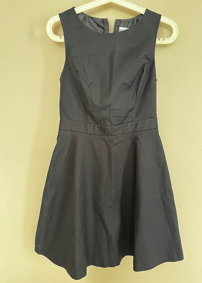 Deri detaylı. Elbise 36 beden fakat, 34 bedene uyumlu.