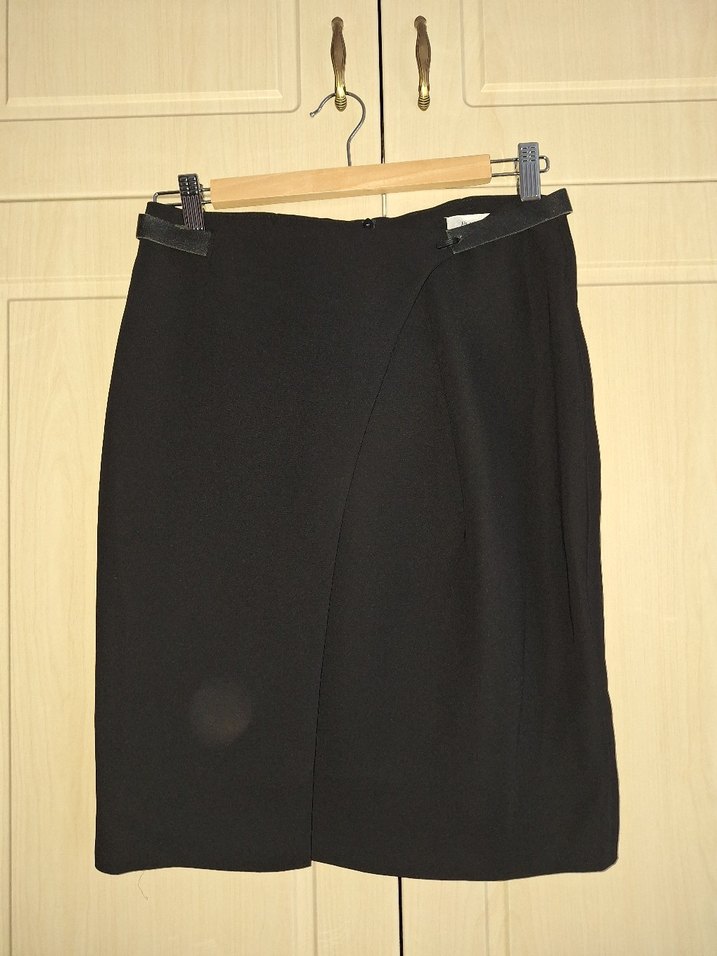 34 beden ama bel uarıda ölçü 36 cm yani 36 beden de giyebilir. Sadece beldeki kemer arka tarafta biraz aşınma oldu. Başka bir kemerle değişebilir. Ön ortadan boy 53 cm, arka fermuarlı ve 15 cm lik gizli yırtmaç var, içi astarkı. Başka defosu yok. Çok az giyildi, temiz ürün.