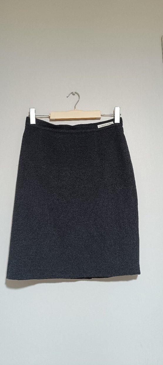 Park Bravo yün kumaştan, diz boyu, sade ve şık kalem etek. Ofis için uygun, minimalist ve basic tarzda, düz desensiz.