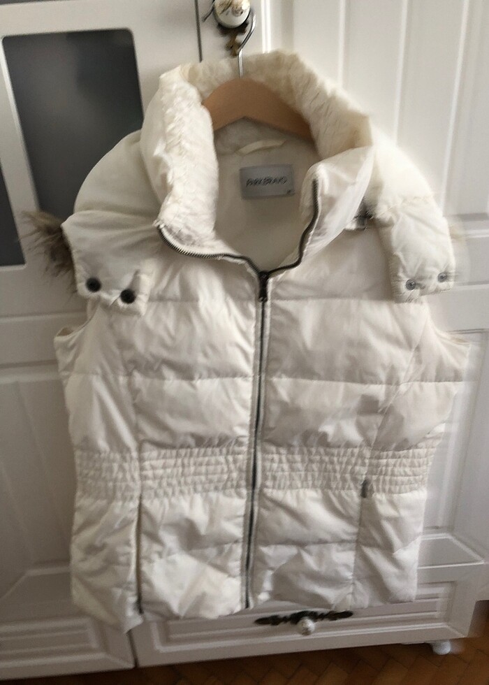 PARK BRAVO SIFIR GİBİ ŞİŞME YELEK. 36 BEDEN BEYAZ. YAKASI KÜRKLÜ İSTERSENİZ ÇIKARIRSINIZ. CEPLİ, BELİ LASTİKLİ. 2 KEZ ANCAK GİYİLDİ. YIKANDI MİS GİBİ SIFIRDAN FARKSIZ….İKİ KOLTUK ARASI 50 CM, BOY 61 CM.