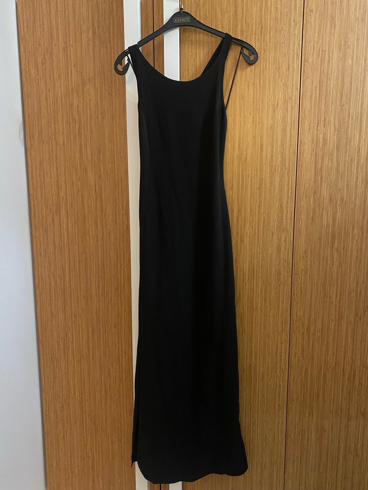 Temiz, sırt dekolteli, önünde yırtmacı var, iç astarlı. 150-160 cm boy