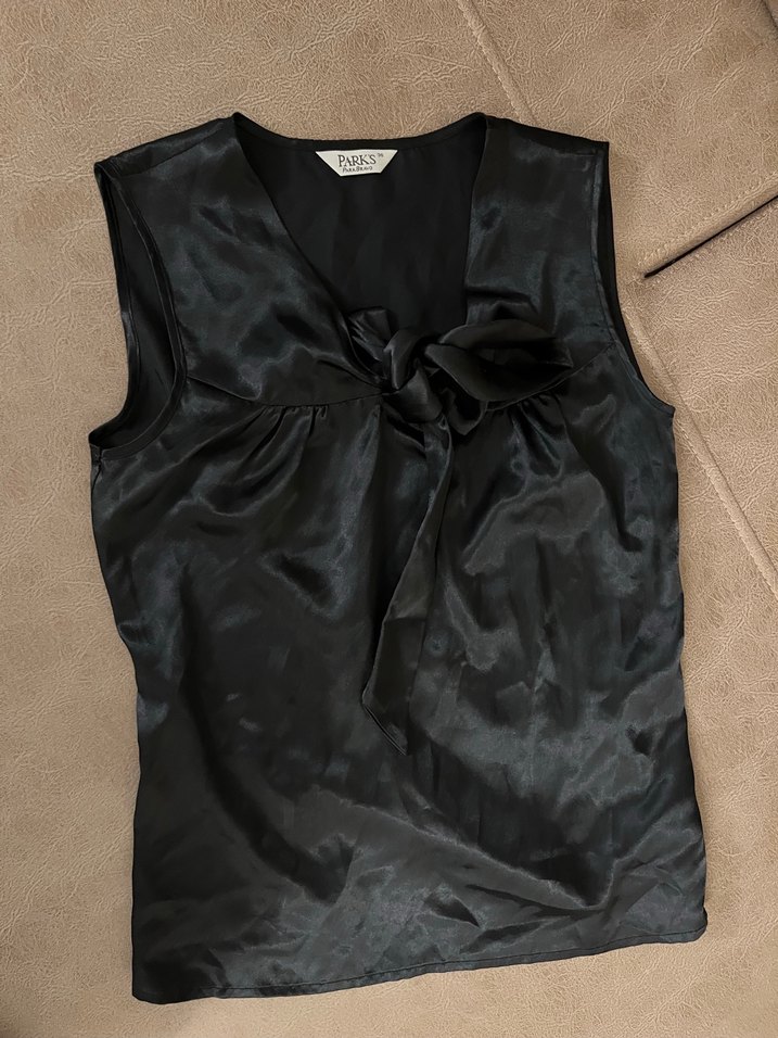 Park Bravo Siyah Saten Fiyonk Detaylı V Yaka Bluz