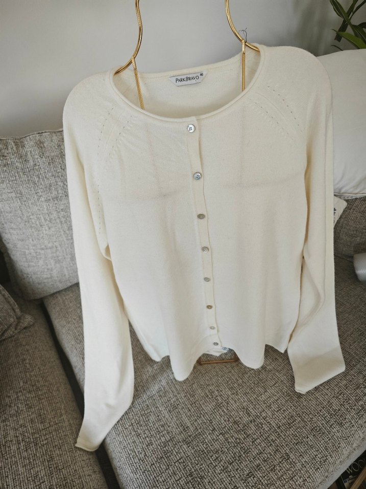 Park Bravo yumuşacık yeni hırka Düğmeli ön kısmı, yuvarlak yaka ve uzun kollara sahip Krem rengi hırka. Rahat kesim ve midi boyuyla modern klasik tarz sunar.