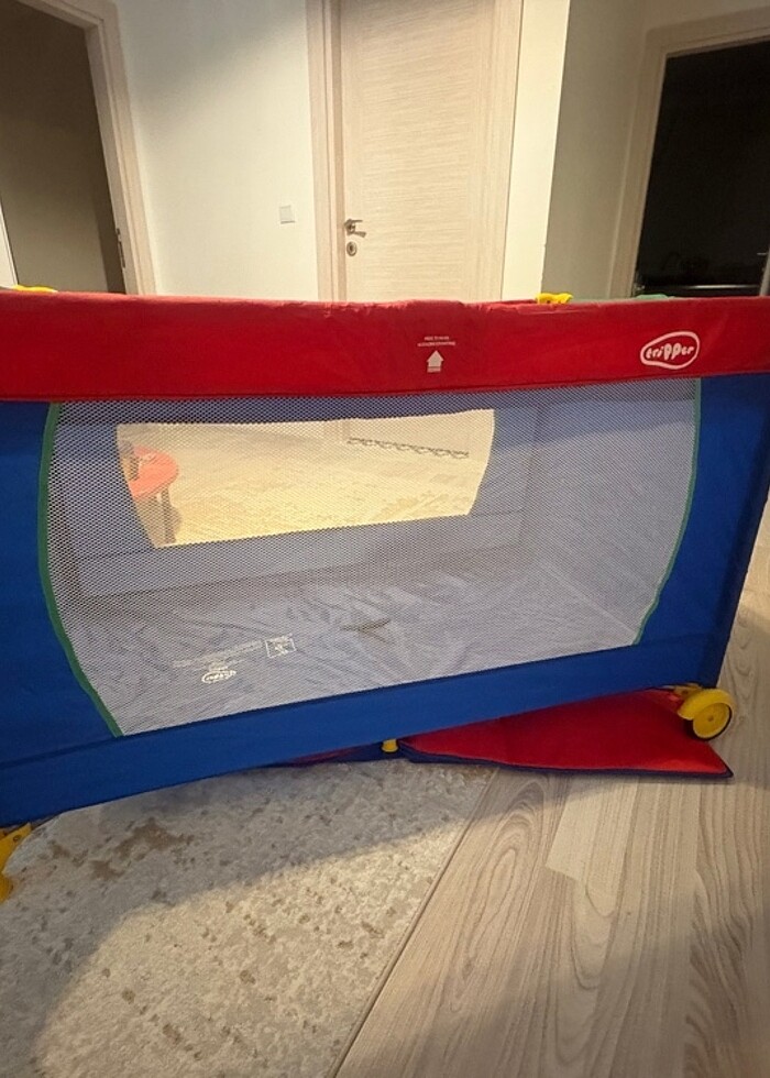 Park yatak kırık vb bir sorunu yok sadece resimlerde görünen yerde 1cm yırtık var tekerlekli tekerler kilitlenebiliyor