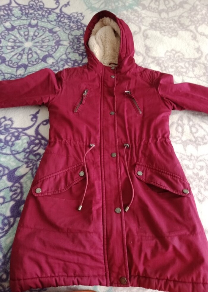 Rengi bordo cır kırmızı değil .Temiz ürün yırtığı söküğü yok temiz 3 yada 4 kere giydim hamilelikten dolayı olmadı defosu yok #parka #kaban #lcwaıkıkı #h&m #defacto #zara #mont #kürk
