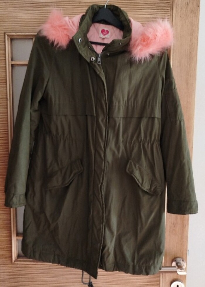 Halı yeşil parka az kullanıldı iyi durumda hafif dolgulu bir ürün kapşonu çıkabilir