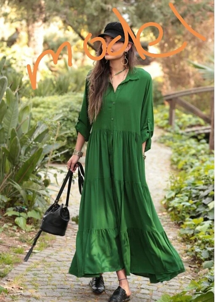 Parkmoda gömlek elbise. Çok hafif efil efil elbise tesettüre uygun. 46 ya kadar olur. Yandan cepli. Yeşil model elbise siyahtır.