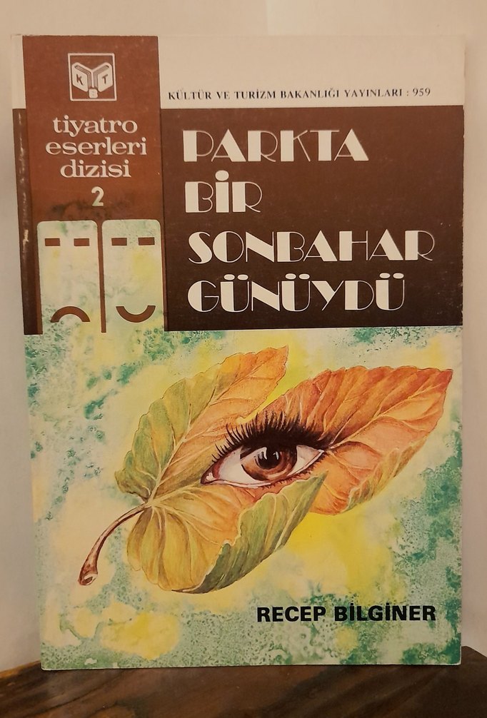 Tiyatro Eserleri Dizisi'nin 2. kitabı olan 'Parkta Bir Sonbahar Günüydü', Recep Bilginer'in oyunu. Sonbahar yaprağı ve göz illüstrasyonu kapakta yer alıyor.