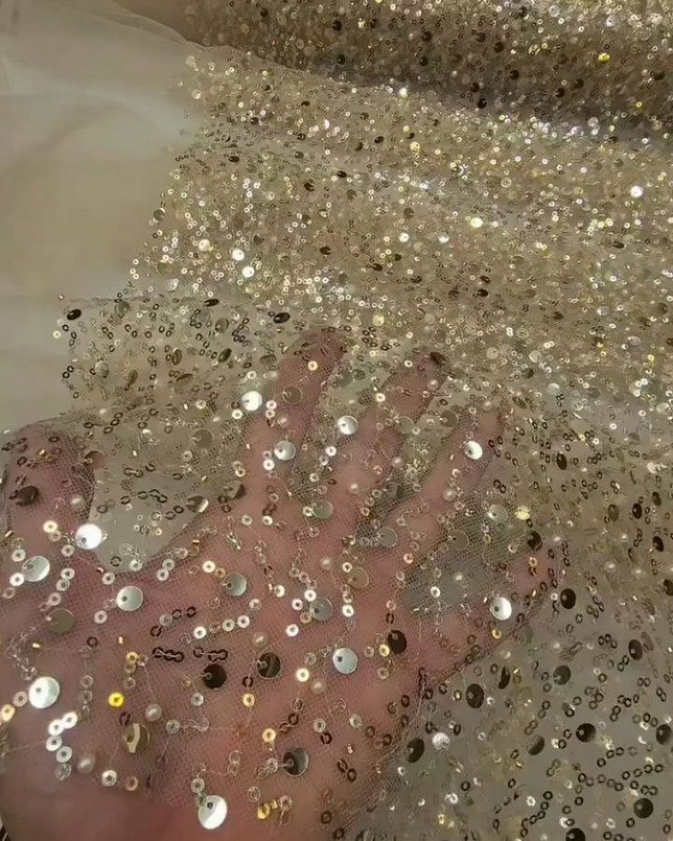 Parlak altın pullarla her türlü kumaş mevcut