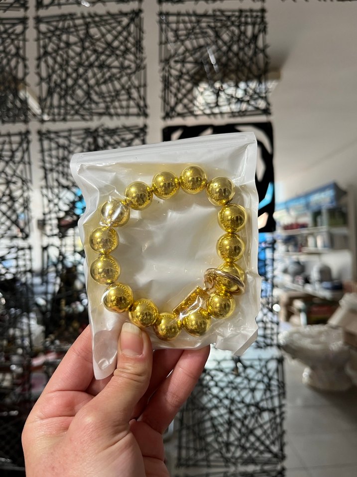 Parlak altın renkli, büyük boncuklardan oluşan kadın bileklik. Avant-garde ve modaya uygun parti stili için ideal. ✨