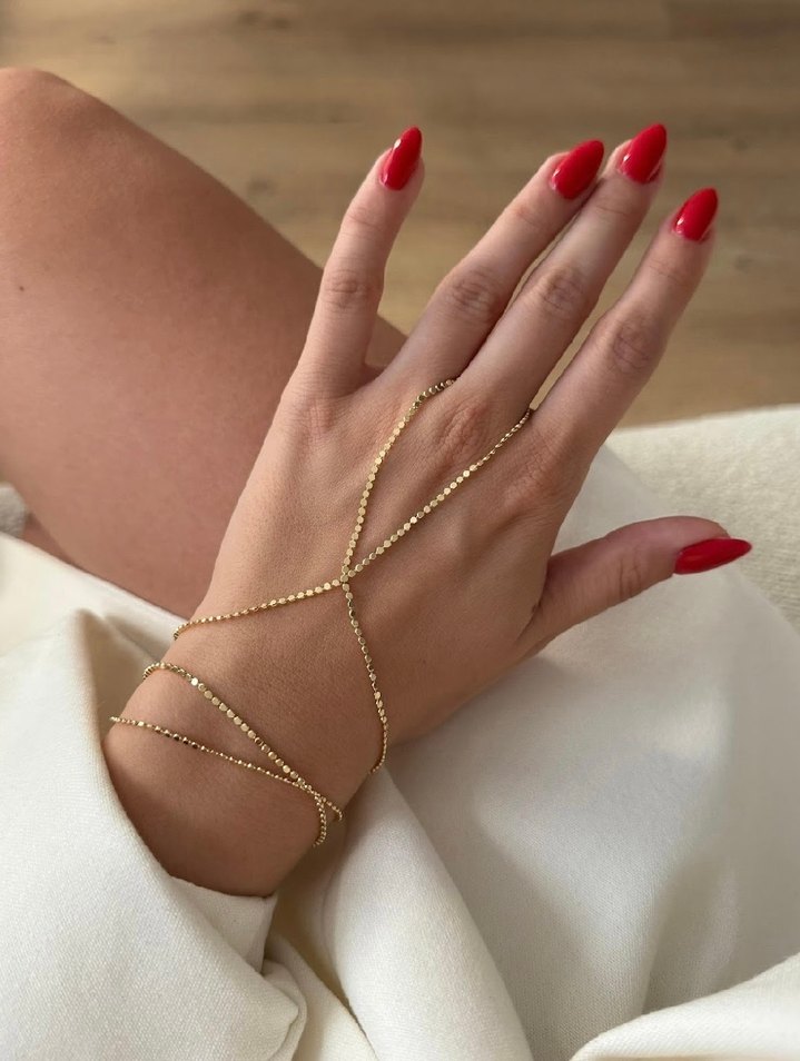 Parlak altın renkli, boncuklu ve yılan desenli el zinciri, cesur bohem tarzıyla günlük kullanım için uygundur. ✨ Marka temsilidir