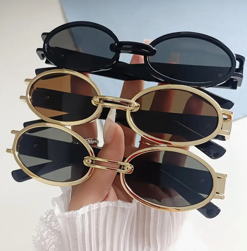 Parlak altın oval çerçeveli, transparan detaylı kadın güneş gözlüğü; retro ve bohem tarzıyla Paris sokak modasına uygun. ️ADET FİYATIDIR