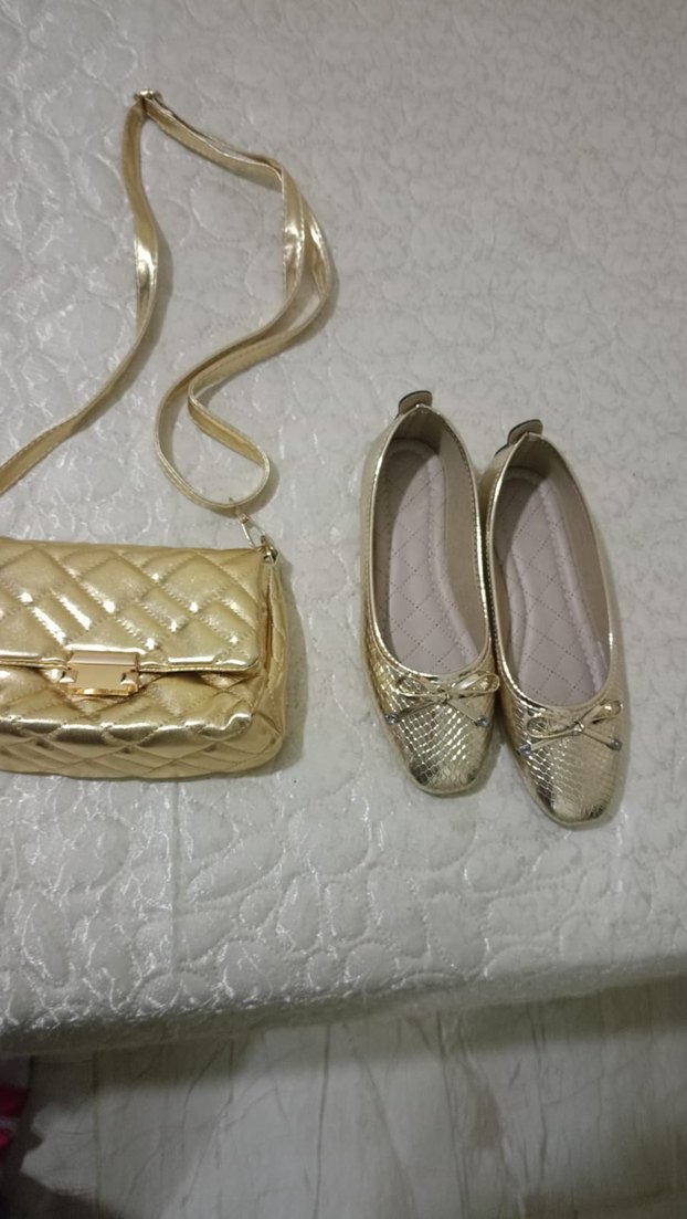 Parlak Altın Deri Kadın Babetler ve Çanta