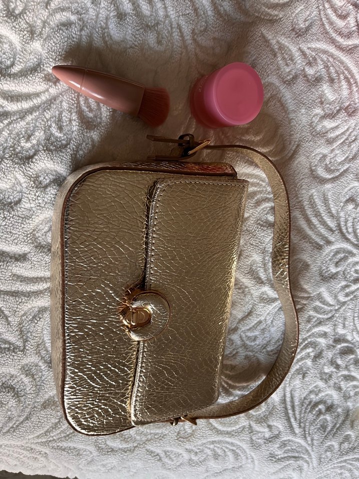Parlak Altın Deri Kadın Çanta