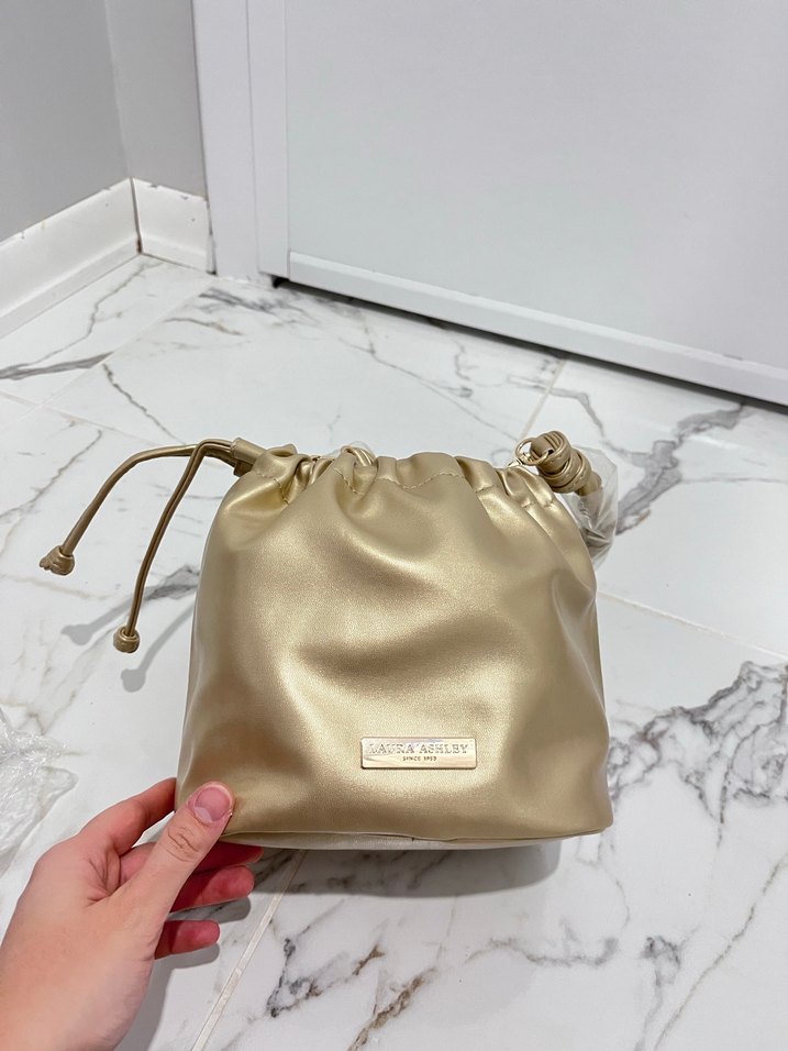 Parlak altın deri kadın çantası, klasik günlük sokak stiline uygun, ipli kapamalı ve desensiz yüzeye sahiptir. Hiç kullanılmadı hediye geldi aynı çantadan bende olduğu için bunu satıyorum
