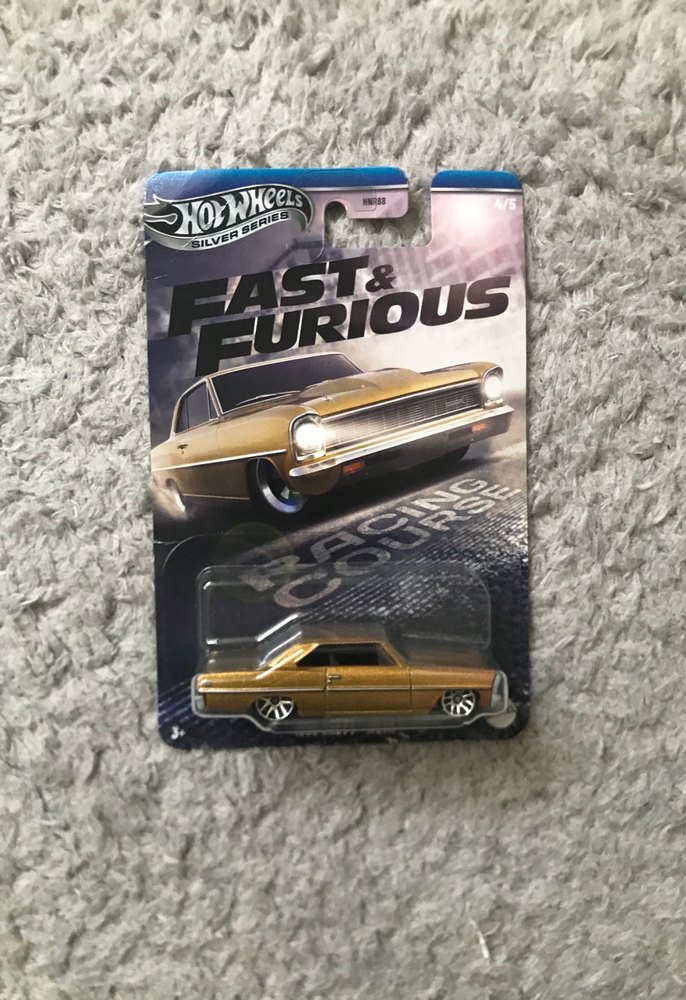 Parlak altın renkte Hot Wheels Fast & Furious serisi oyuncak araba, detaylı tasarım ve pürüzsüz tekerleklerle sahip