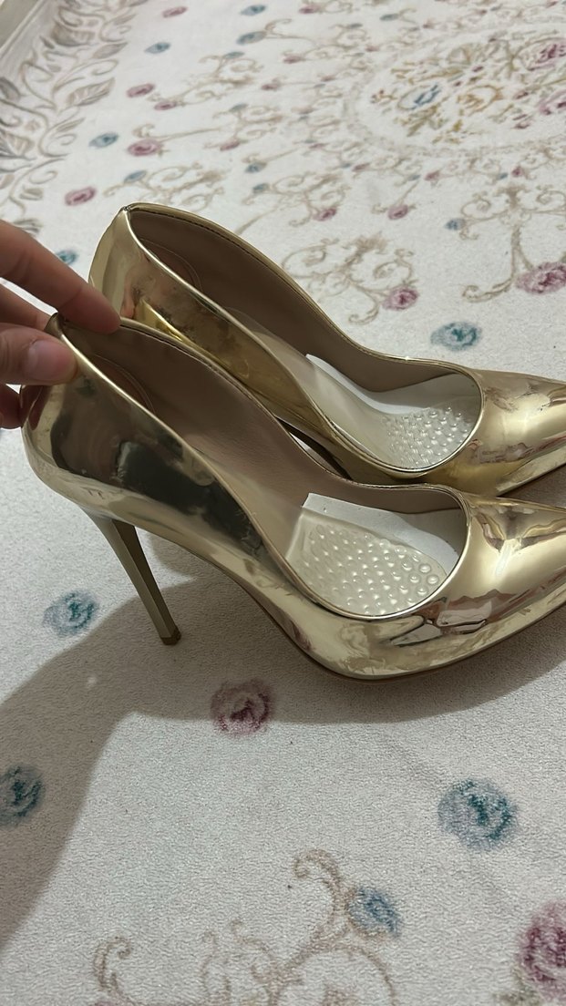 Parlak Altın İnce Topuklu Kadın Ayakkabı