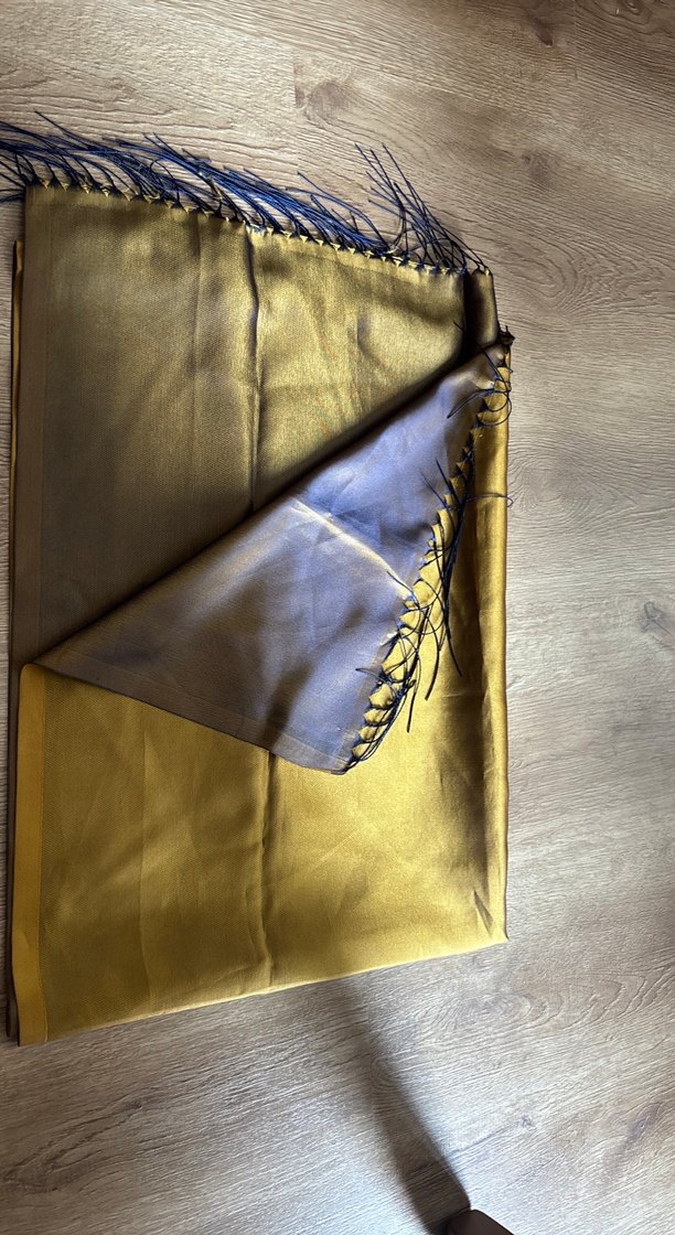 Kadınlar için parlak altın drapeli tasarıma sahip şal. Bohem ve avangart stil sunar, moda tutkunları için ideal. ✨