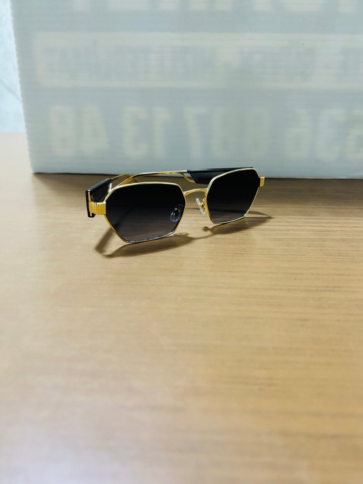 Parlak altın çerçeveli kadın güneş gözlüğü, klasik sokak stiliyle rahat ve şık bir görünüm sunar. ️