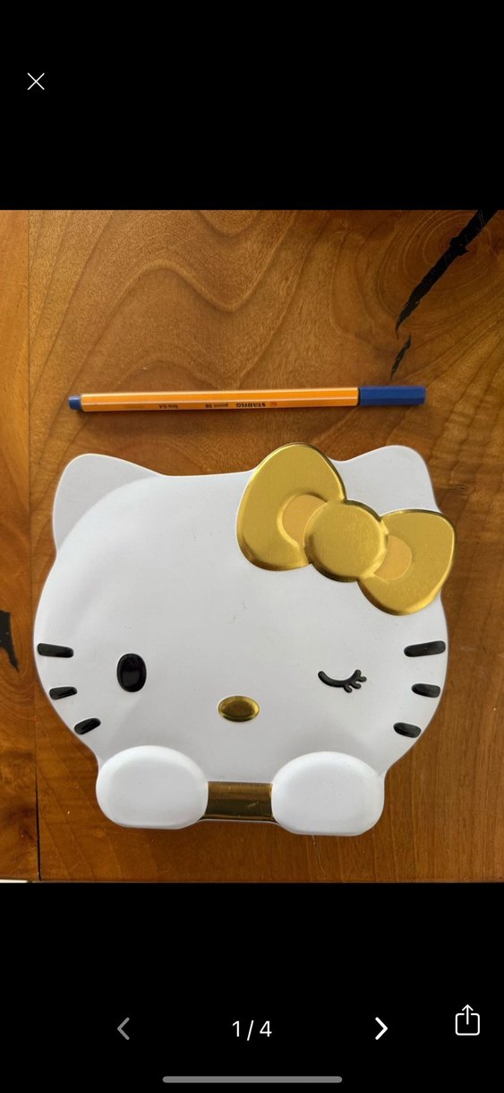 Parlak altın renkli, fiyonk detaylı kedi yüzü şeklinde kedi aksesuarı. Hem dekoratif hem kullanışlıdır.