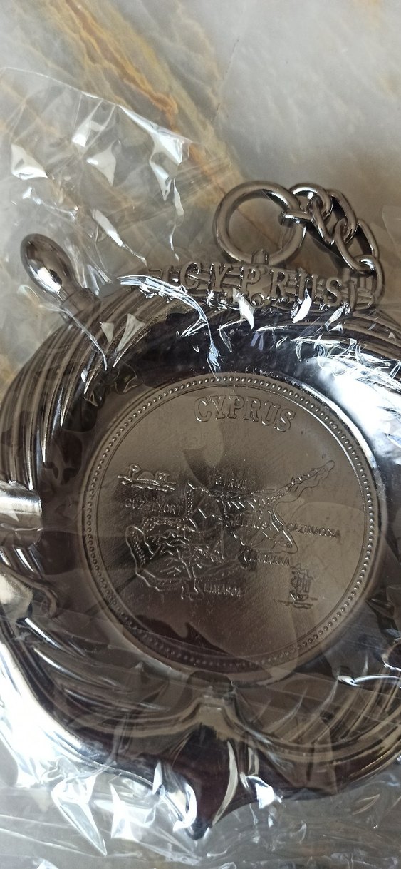 Parlak altın renkte, Kıbrıs haritası temalı Demir döküm kırılmaz kül tablası ✨