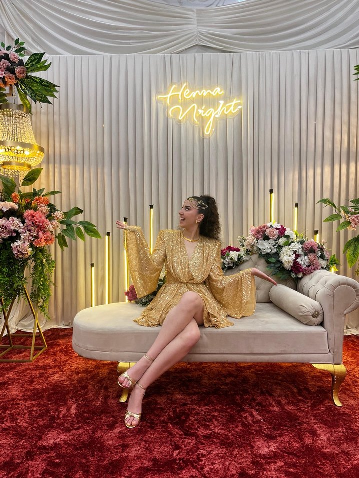 Gire marka elbise. Sadece kına gecemde 1 kez giydim. Dekoltesini kapattırdım düzelttirebilirsiniz. ✨