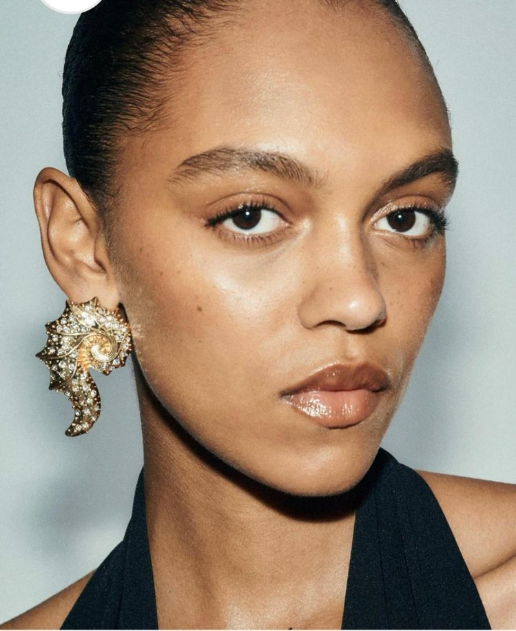 Parlak payetlerle süslenmiş, desenli bohem tarzında altın mini küpeler, romantik akşamlar için uygun. ✨