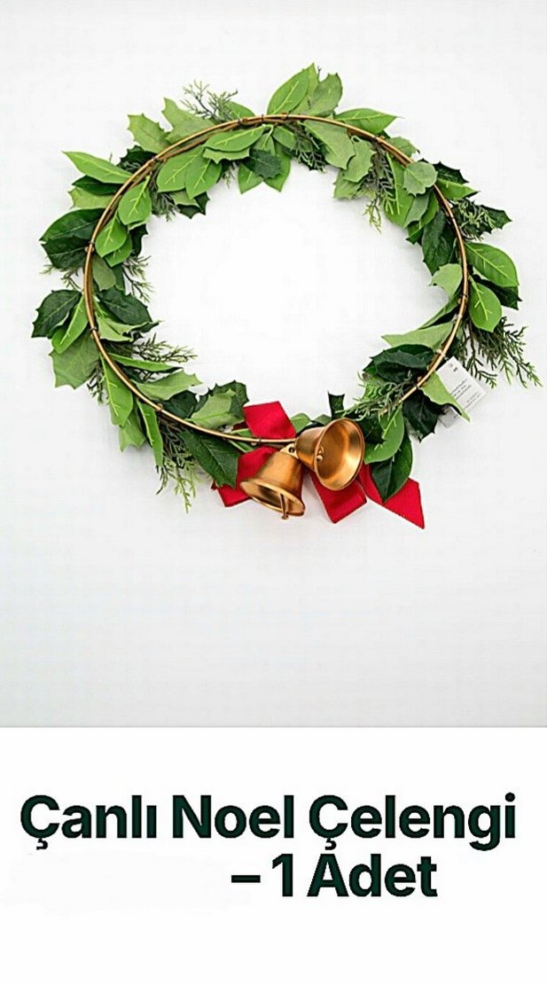 Ön Kapı Yılbaşı Çeleng Süsü. Yeşil yapraklar, iki zil ve kırmızı kurdele ile parlak altın renkte Noel çelengi, üzerinde 'Canli Noel Celeng. Çanlar metal ve büyüktür. Çağlarda çizilmeler mevcut tur lakin rahatsız edici düzeyde değildir. ALICISINA ŞİMDİDEN HAYIRLI OLSUN.