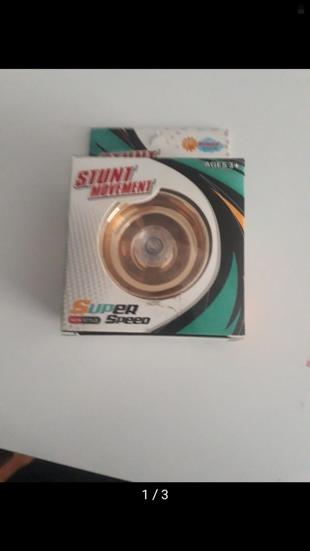 Parlak altın renkli oyuncak araba, 3 yaş ve üzeri çocuklar için uygundur. Kutu üzerinde "SIUNT MOLEMENT" yazısı vardır.