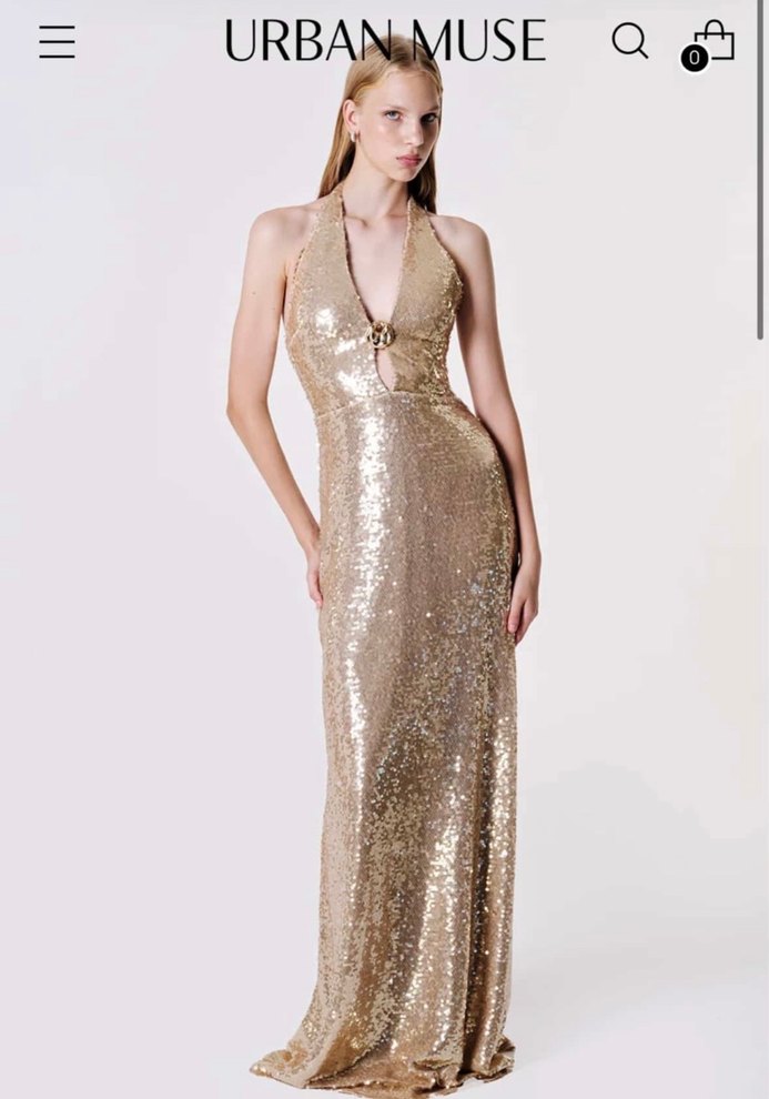 Parlak Altın Payetli Uzun Abiye Elbise