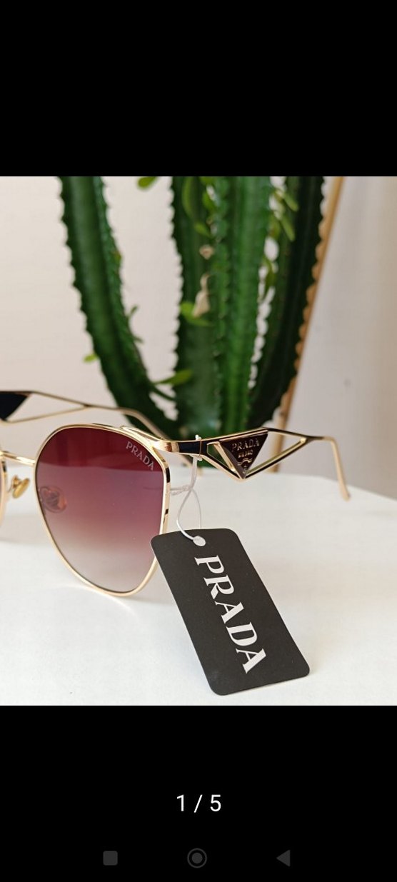 Parlak altın renkli Prada kadın güneş gözlüğü, şık çerçeve ve degrade camlara sahiptir. Prada logosu detaylarıyla sokak modasına uygundur.