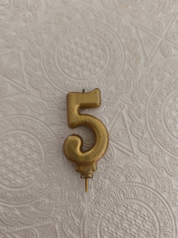 Parlak altın renkte 5 rakamı şeklinde mum, doğum günü veya özel günler için uygundur. ️