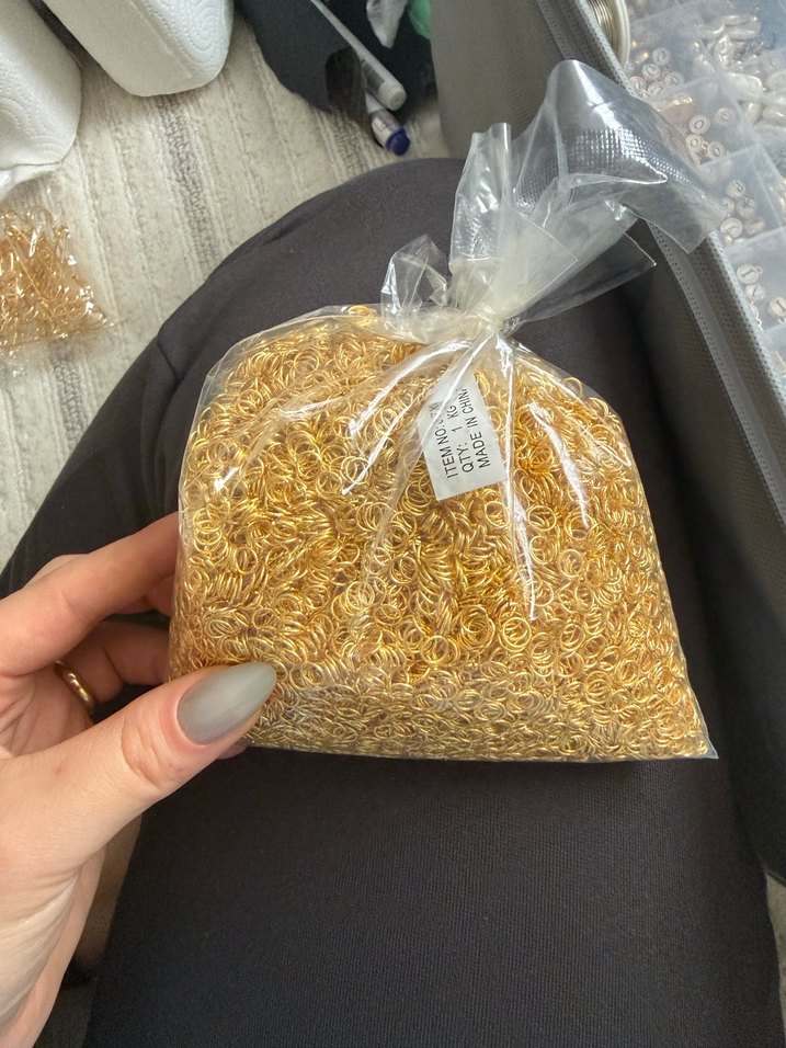 Parlak altın renkli küçük halkaları, şeffaf plastik poşette paketlenmiş. detay katmak için uygundur.