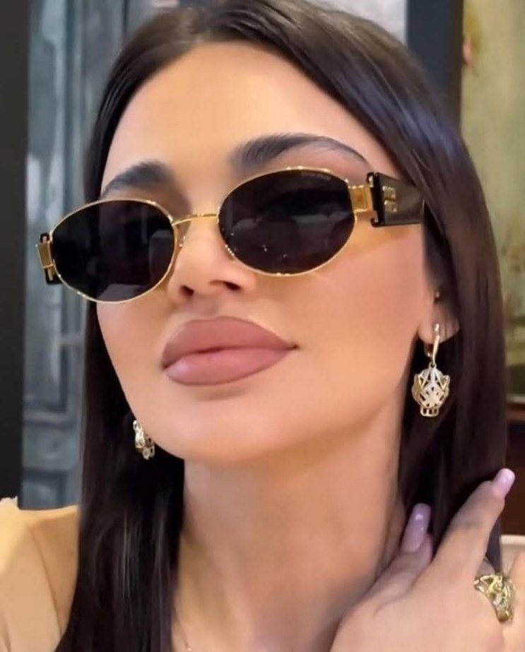 Parlak altın renkli çerçeveleriyle klasik kadın güneş gözlüğü, cesur sokak stili ve zahmetsiz şıklık sunar. ️