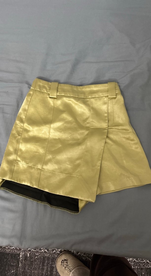 Parlak Altın Renk Pilili saten Mini Şort