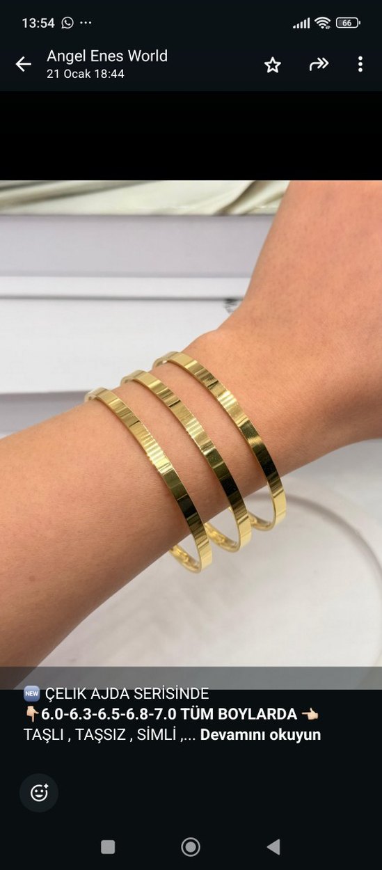 Parlak altın renkli, piliseli ve minimalist tasarıma sahip çağdaş stil bileklik. Günlük kullanım için uygundur. "Çelik Ajda" serisine aittir. ✨