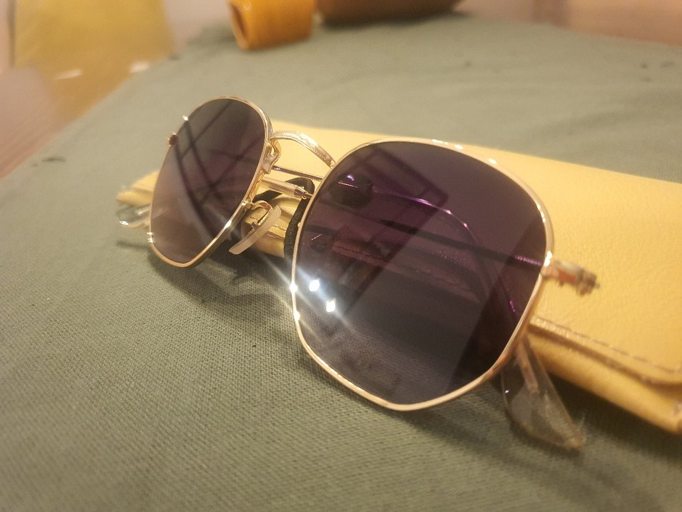 Parlak altın renk çerçeveli, koyu renk lensli, bohem ve hippie tarzına uygun klasik retro kadın güneş gözlüğü. ✨